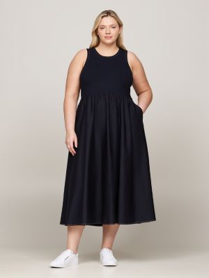 Curve Sleeveless Fit And Flare Slim Fit Dress Blue Tommy Hilfiger