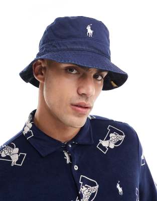 Polo Ralph Lauren reversible check and plain twill bucket hat in dark green navy ASOS