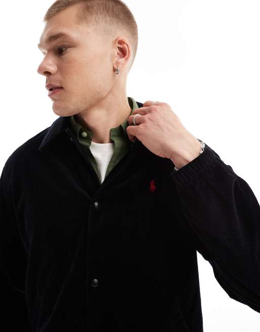 Polo Ralph Lauren icon logo lined cord coach jacket in black