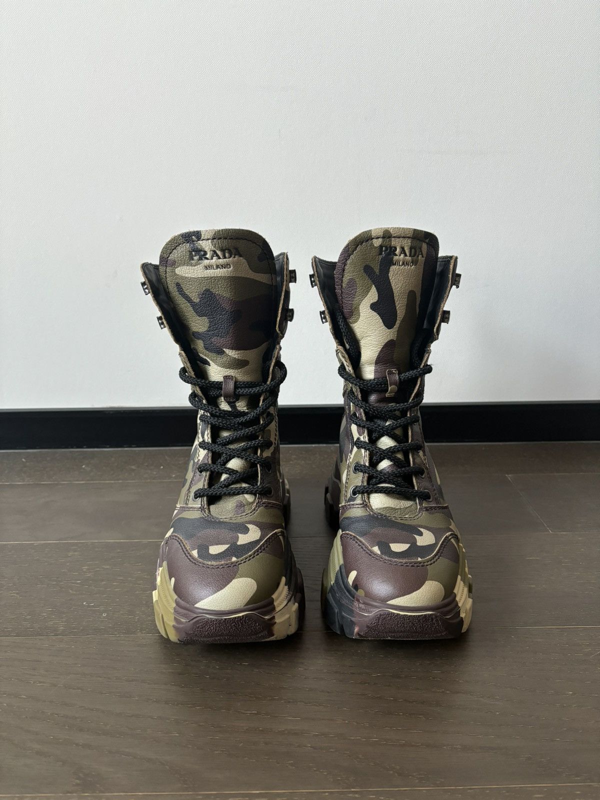 Prada army shoes deals, Prada Leather Camouflage Print Combat Boots Green Boots Shoes PRA829606 The RealReal deals