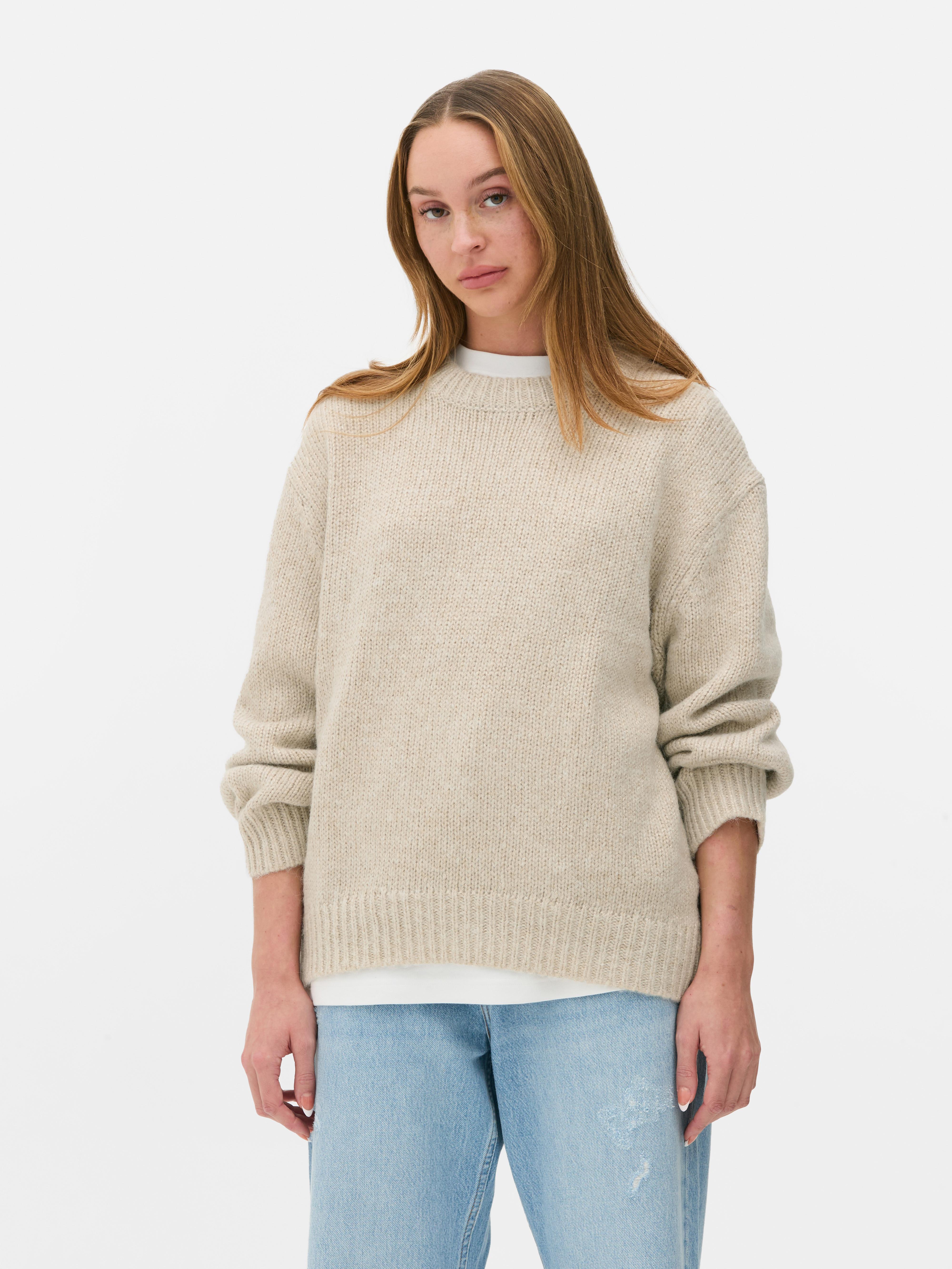 Womens Camel Oversized Crew Neck Jumper Primark