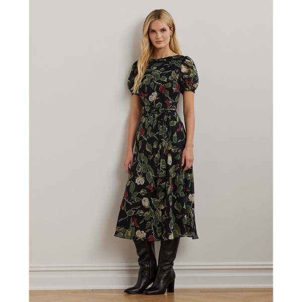 Print Belted Georgette Puff Sleeve Dress for Women Ralph Lauren UK
