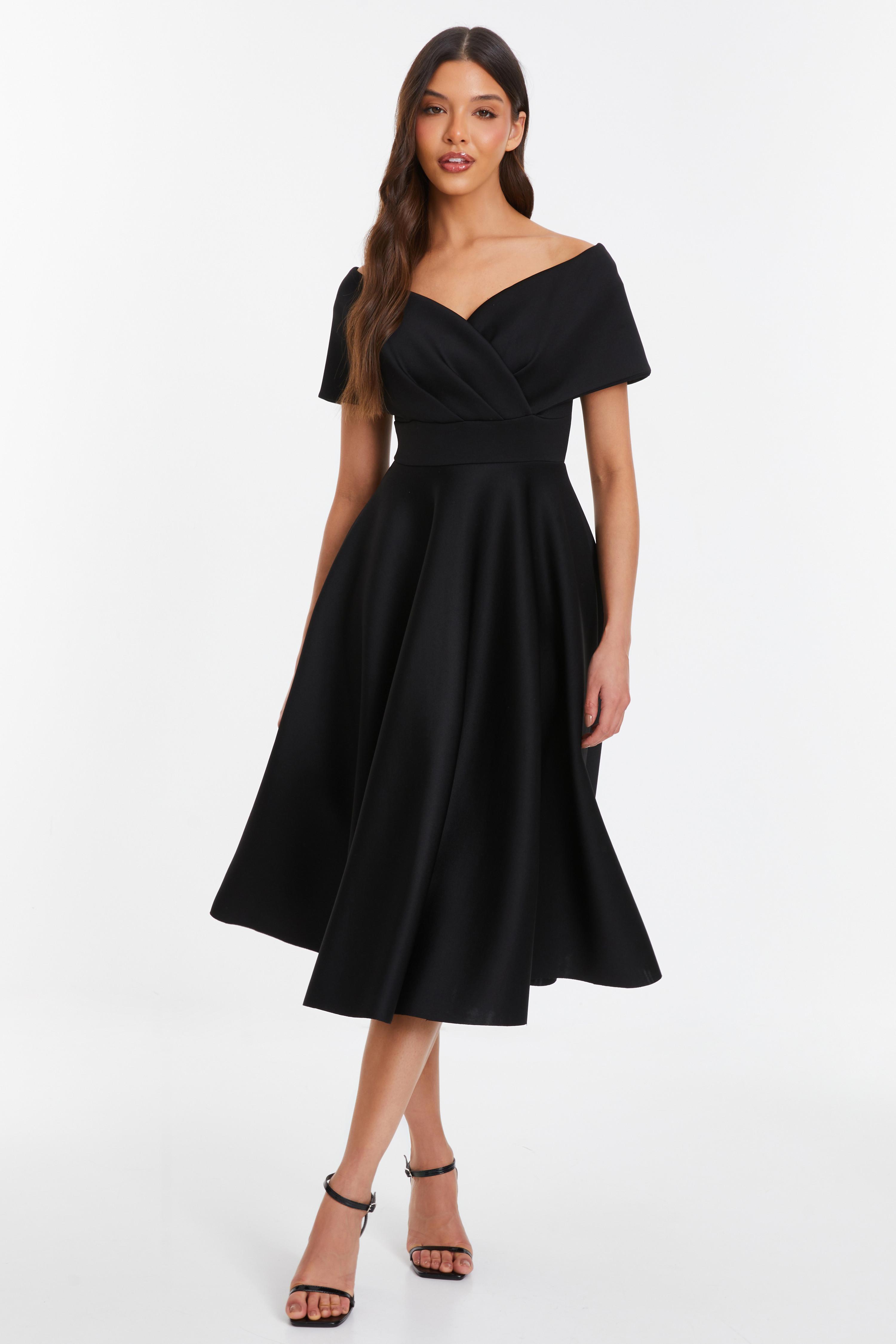 Quiz bardot black dress deals, Black Bardot Skater Midi Dress deals