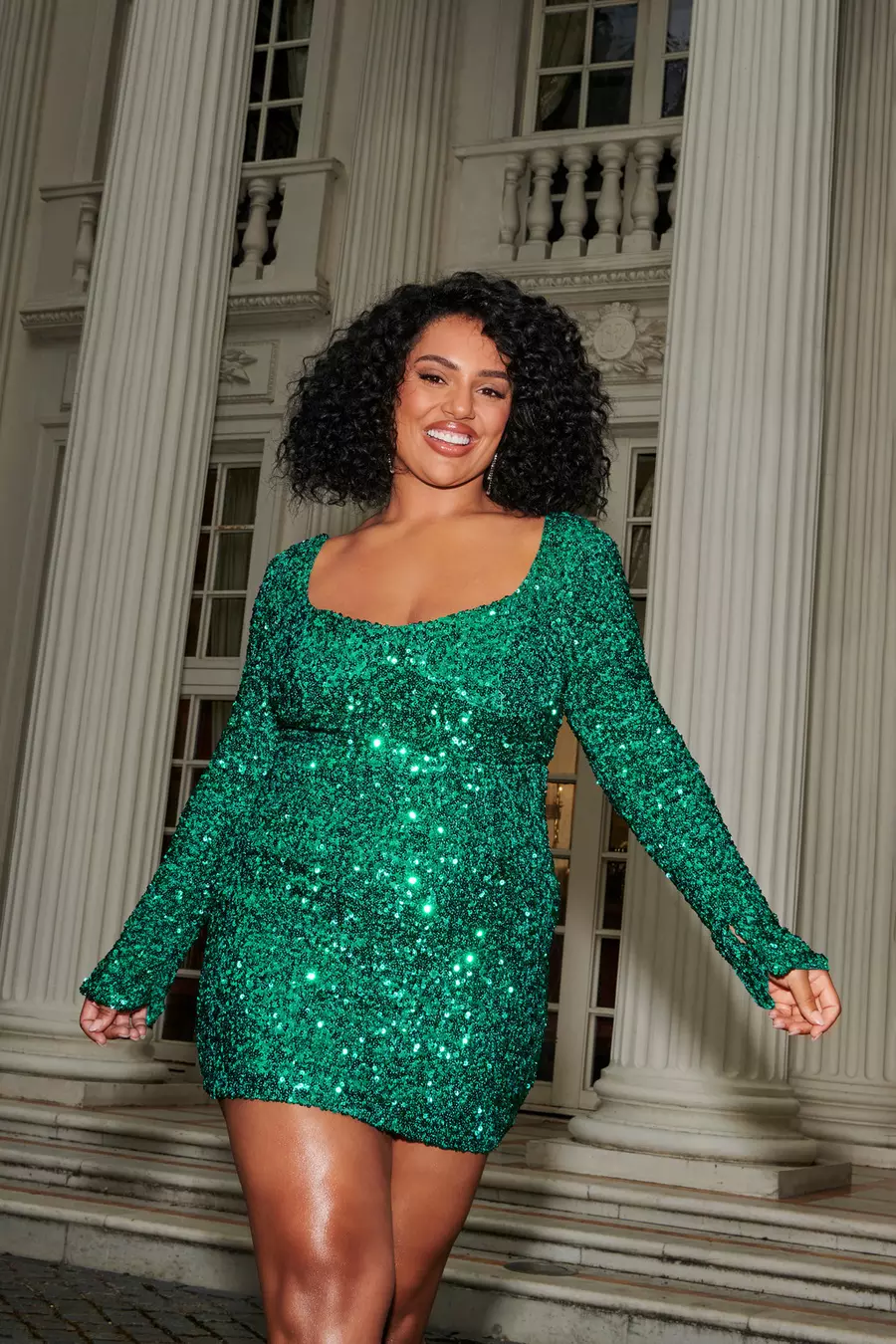 Jade Green Sequin Flute Sleeve Mini Dress QUIZ Clothing