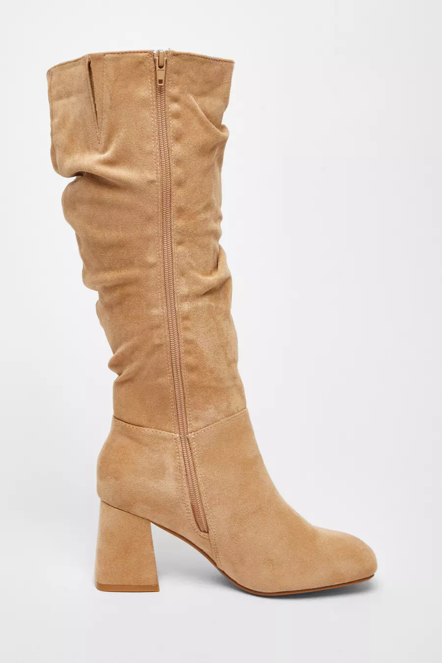 Wide Fit Taupe Knee High Faux Suede Block Heel Boots QUIZ Clothing