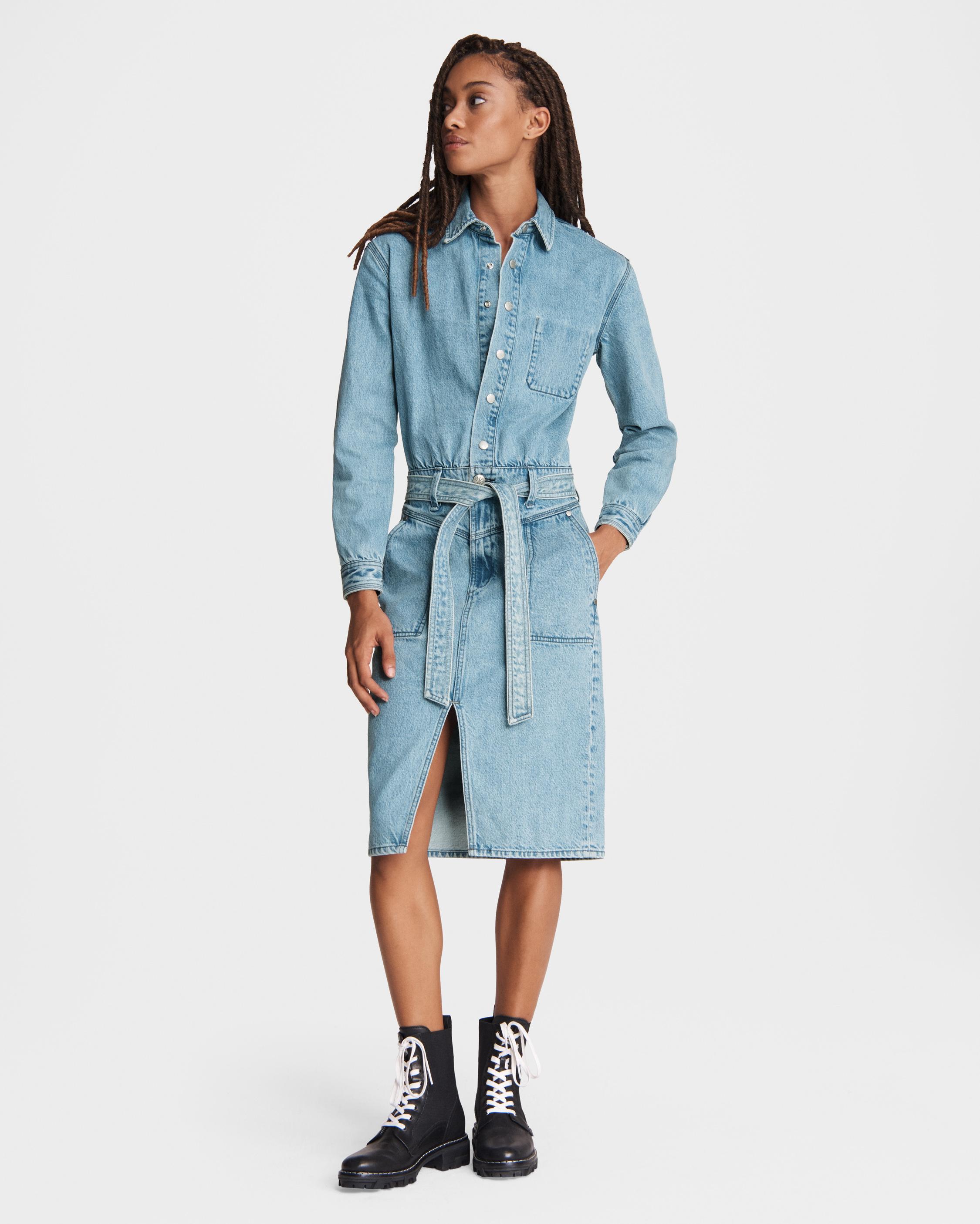 rag bone Georgia Buckle Strap Midi Dress Natural