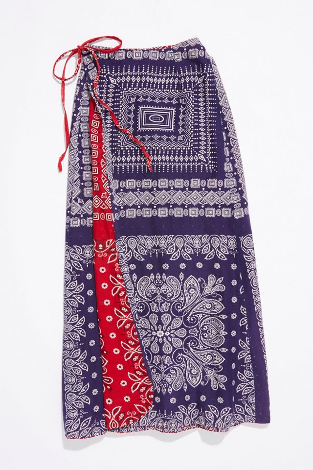 Vintage 1970s Reversible Bandana Print Wrap Skirt Free People