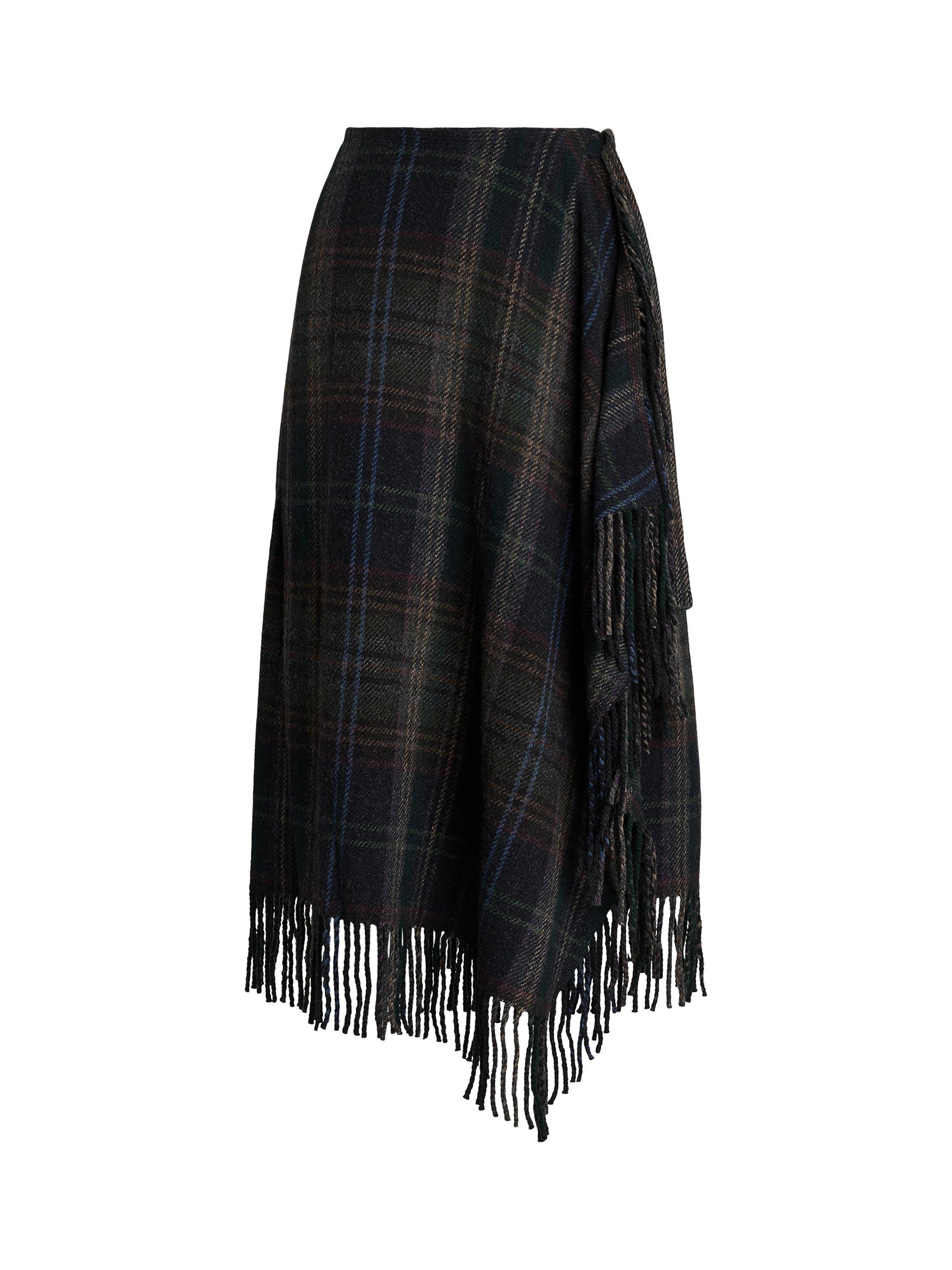 Polo Ralph Lauren Leonna Fringe Trim Plaid Wrap Midi Skirt Multi