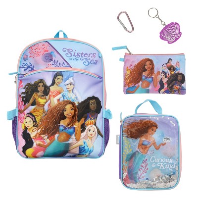 Little Mermaid 2023 Live action Movie 5 piece Set 16 Backpack Lunchbox Utility Case Rubber Keychain And Carabiner Target