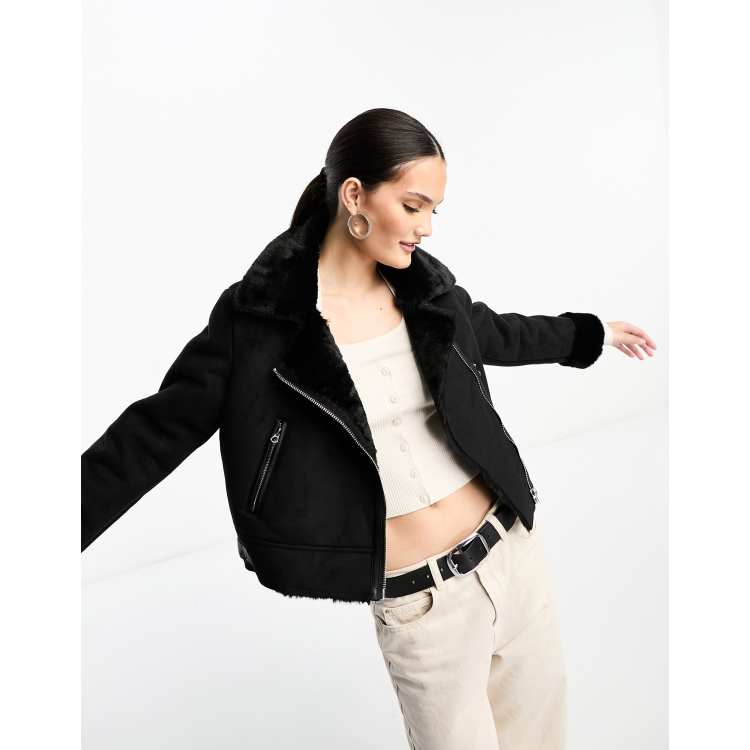 Asos aviator jacket womens deals, The Frolic oversized aviator jacket in black and cream deals