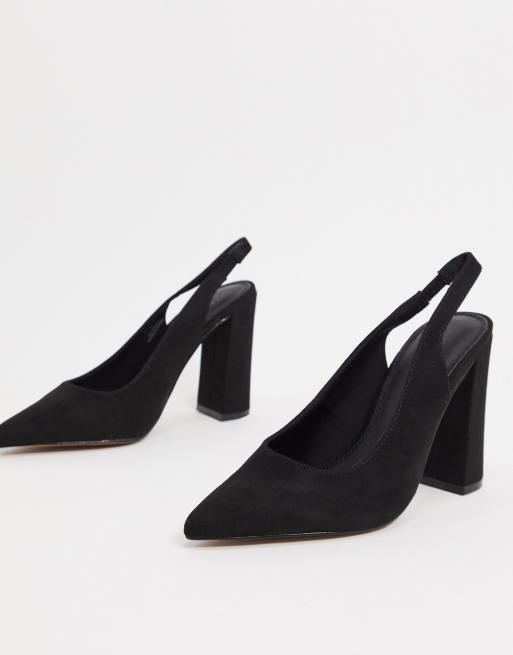 ASOS DESIGN Hotel barely there block heeled sandals in black PU ASOS
