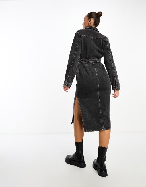 Asos black denim dress deals, ASOS DESIGN denim midi dress in washed black ASOS deals