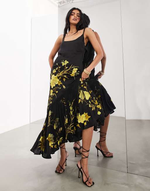 ASOS EDITION floral embroidered bias cut midi dress with fringe in black ASOS