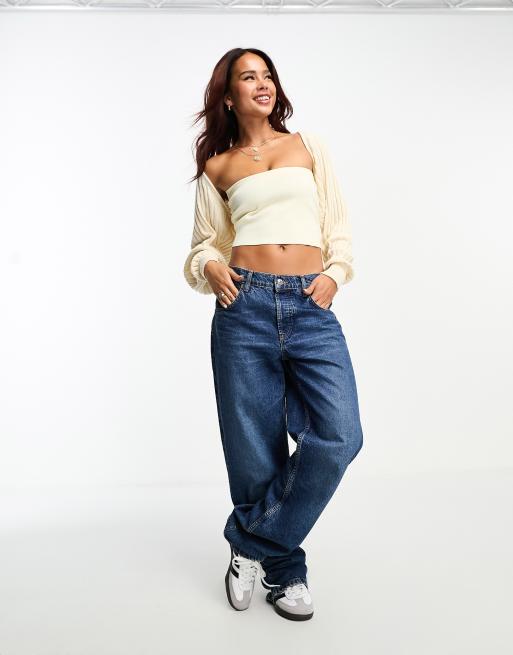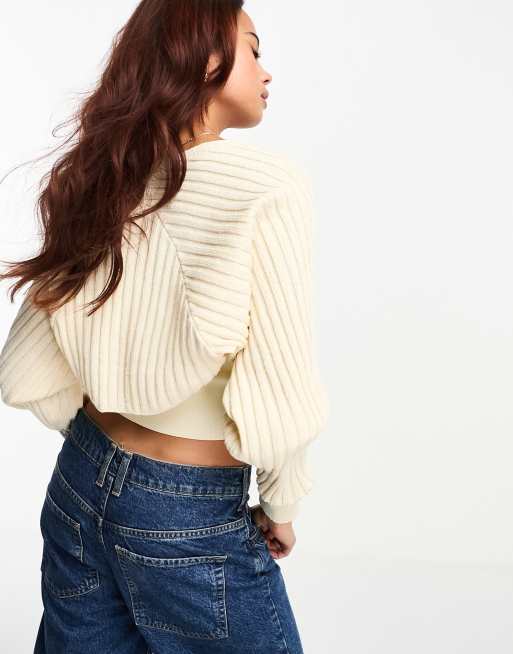ASOS DESIGN Gilet bolero en maille cotelee epaisse Ecru