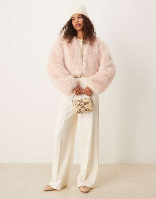 ASOS DESIGN Veste bolero en fausse fourrure Rose clair ASOS
