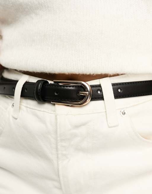 ASOS DESIGN Ceinture fine taille et hanches pour jean avec boucle doree Noir