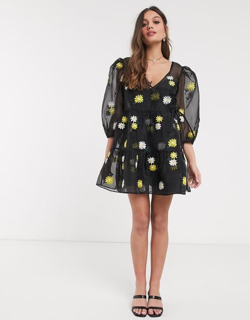 ASOS DESIGN oversized daisy mesh dress in black ASOS