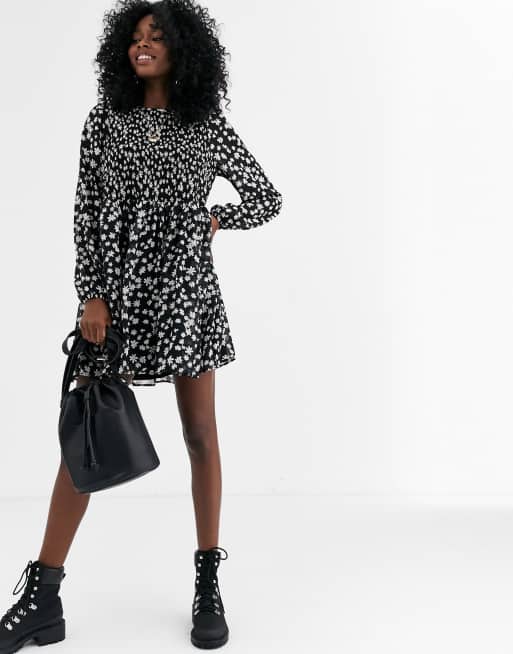 ASOS DESIGN shirred mini smock dress in daisy floral print ASOS