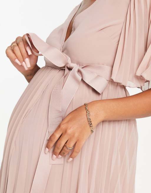 ASOS DESIGN Maternity exclusive pleated midi dress with kimono sleeve and tie waist ASOS