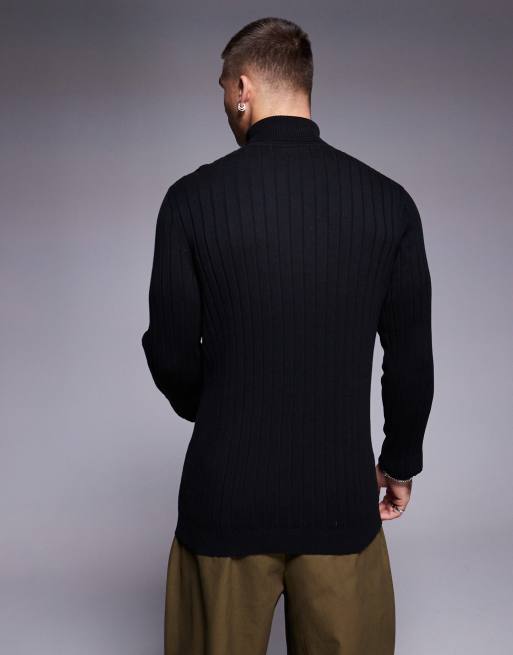 Asos design muscle fit ribbed roll neck jumper in black deals
