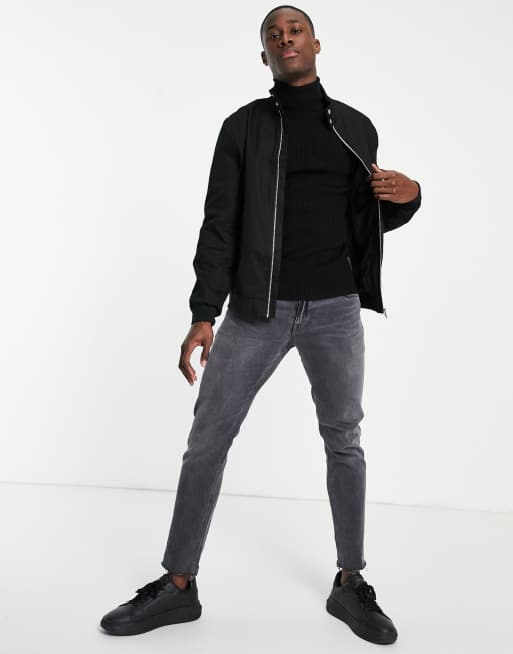 ASOS DESIGN essential muscle fit knitted rib roll neck jumper in black ASOS
