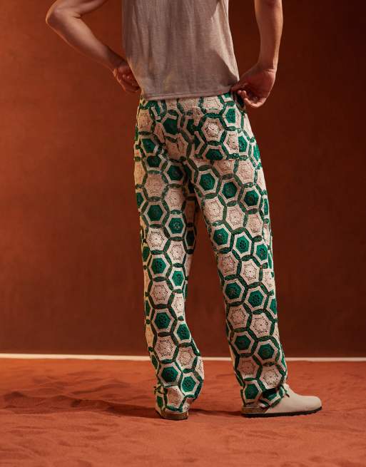 ASOS DESIGN Premium lace crochet relaxed pants with elasticated waist in green part of a set ASOS