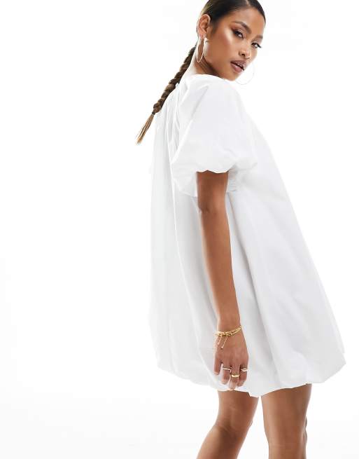 ASOS DESIGN puffball smock mini dress in white