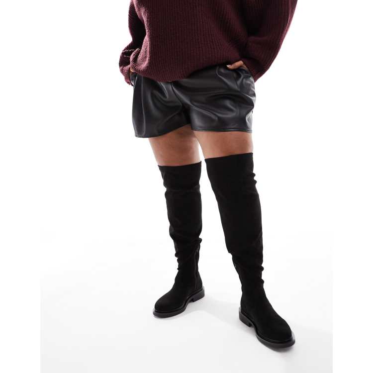 ASOS DESIGN Curve Kaylee smart flat over the knee boots in black