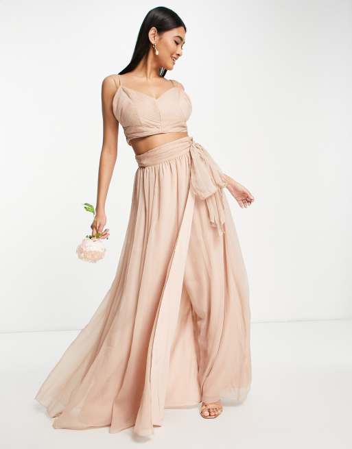 ASOS DESIGN Bridesmaid soft wrap maxi skirt in blush part of a set
