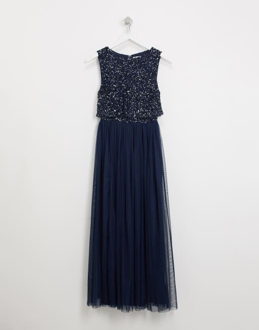 Maya Bridesmaid sleeveless midaxi tulle dress with tonal delicate sequin overlay in navy ASOS