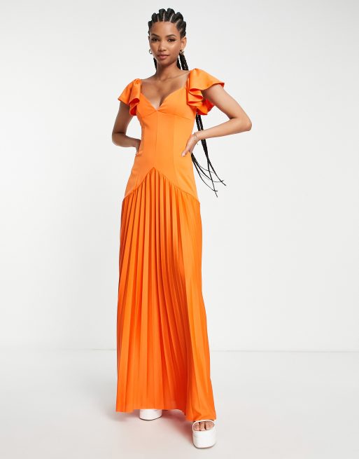 - asos orange pleated maxi dress