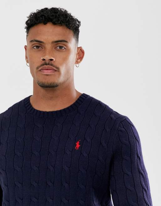 Polo Ralph Lauren cable knitted jumper in navy with player logo
