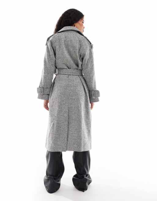 ASOS DESIGN Petite formal faux wool trench coat in salt and pepper