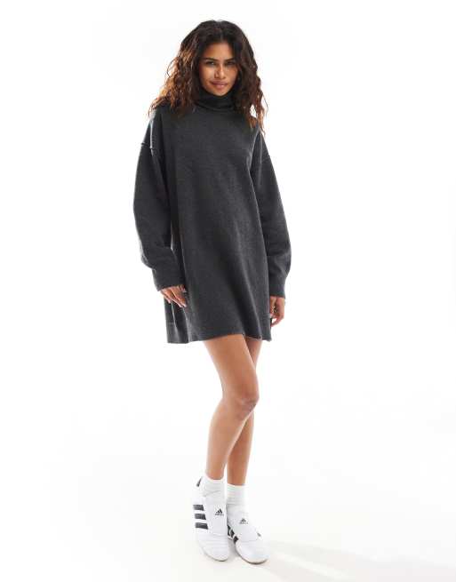 Weekday Annie wool blend roll neck knitted mini dress in black melange exclusive to ASOS ASOS