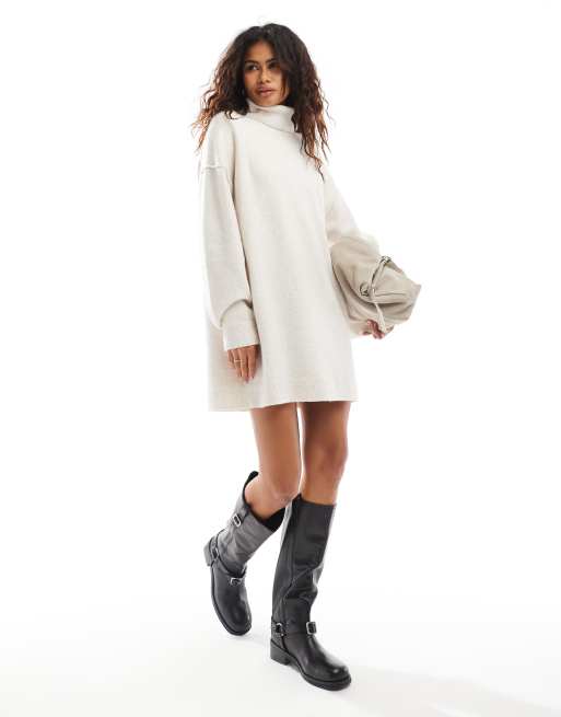 Asos wool dress deals, Weekday Annie wool blend roll neck mini knitted jumper dress in beige melange exclusive to ASOS deals