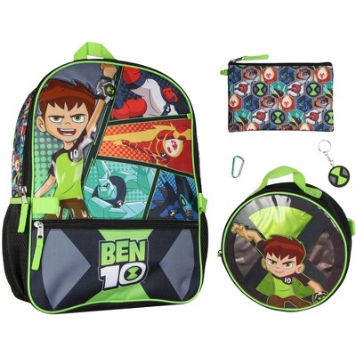 Bioworld Ben 10 Omnitrix Aliens 5pc School Travel 16 Backpack Set Lunch Box Pencil Bag Keychain Carabiner