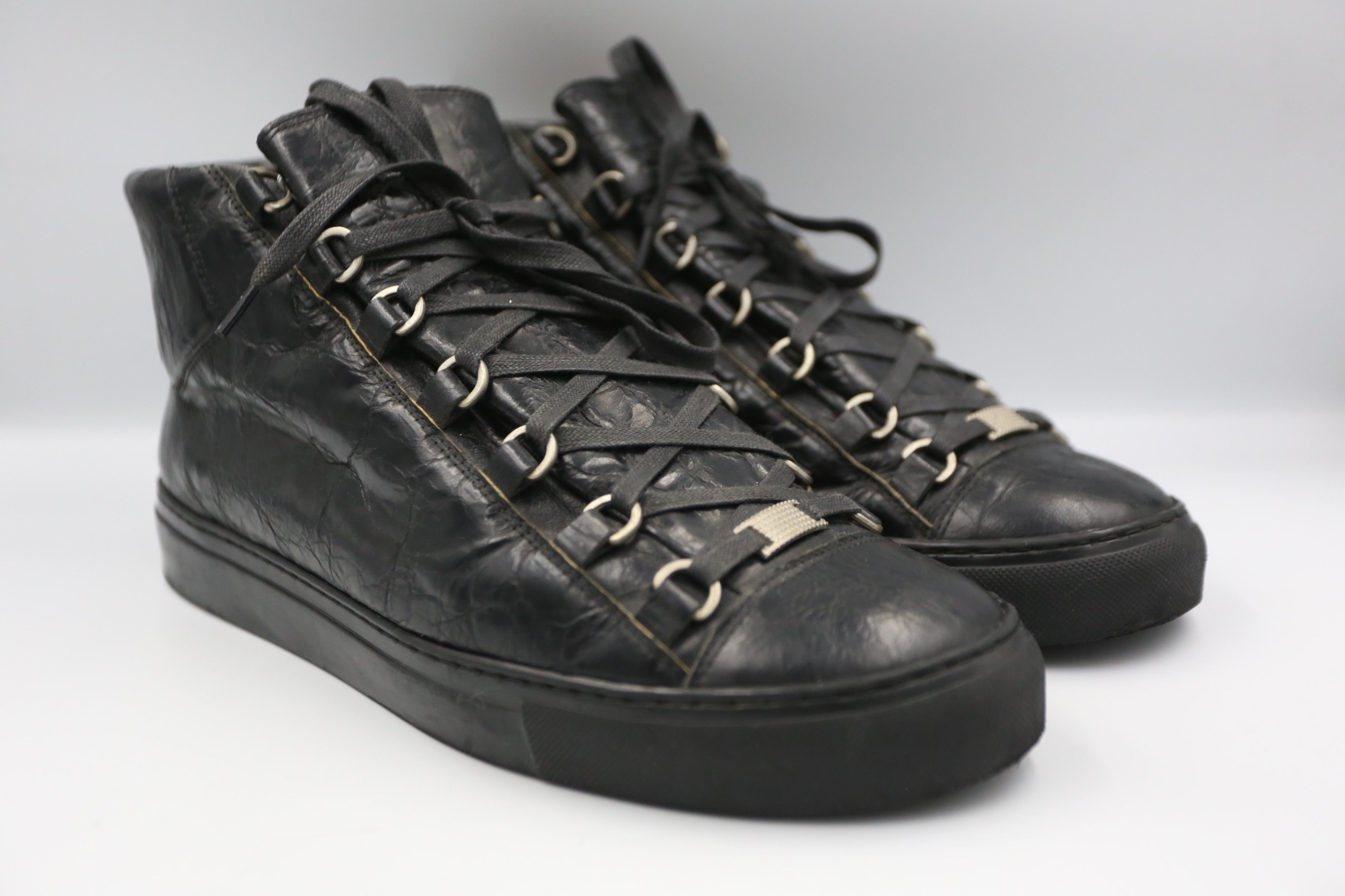 Balenciaga Black Leather Arena High Top Sneakers Size 45 Balenciaga TLC
