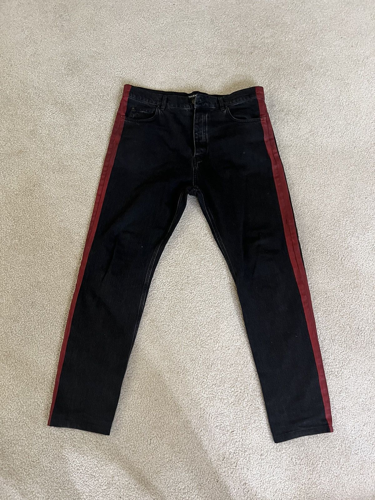 - balenciaga red stripe jeans