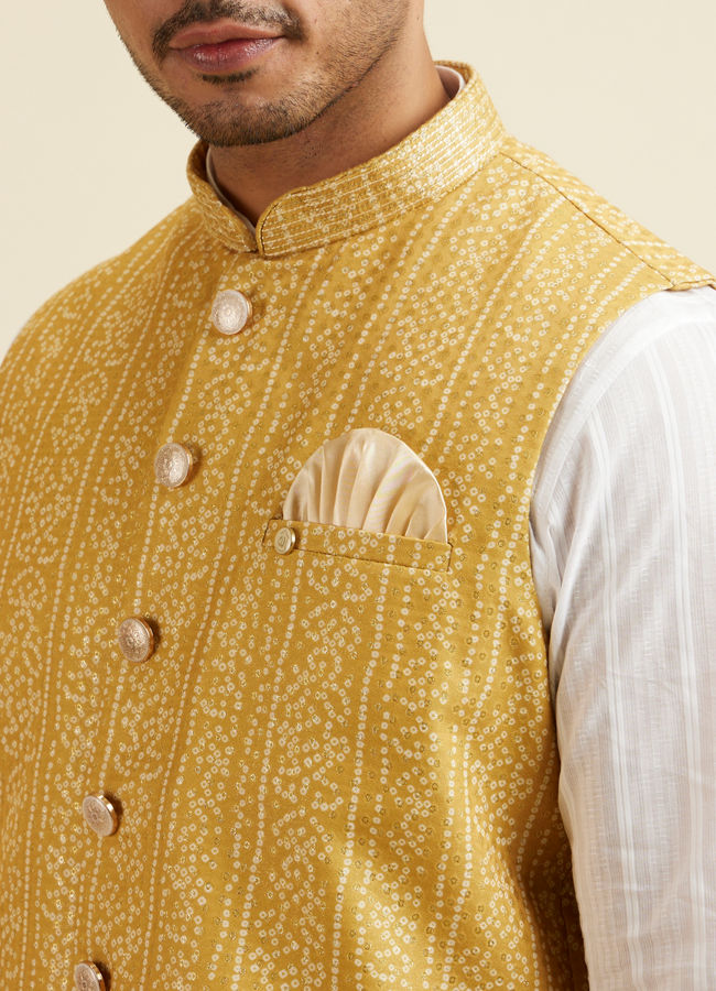 Buy Mustard Yellow Bandhani Print Nehru Jacket Online in the USA Manyavar Nehru Jacket for Men