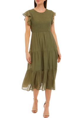 Emma Michelle Women s Ruffle Sleeve Smocked Solid Gauze Midi Dress belk